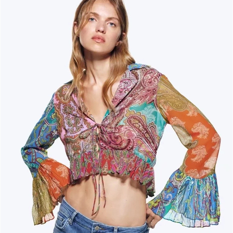 Locomotive Style Printed Loose Round Neck Long Sleeve Fashion